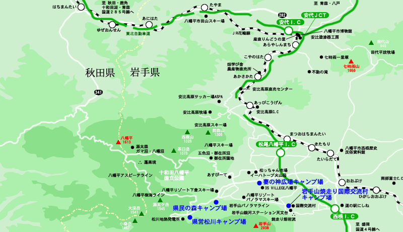 - 松尾八幡平I.Cから県道45号で八幡平温泉郷方面へ約12km