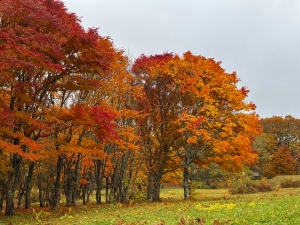 写真は、岩手県県民の森(11/3)園内の様子です。カエデ類の紅葉が最盛期です。園内散策の際は、熊鈴をお持ち下さい。