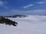 撮影日:4月15日(水)。写真は、八幡平山頂散策路、展望台付近から撮影したガマ沼です。 歩く場合は、雪上トレッキングになりますので、履物、防寒具等の用意が必要です。竹の竿を目印に歩いて下さい。